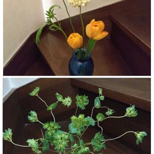 こんにちは☀️ 昨日はみぞれが降りました❄ とても寒いですね・・ 積もらなくて良かったのですが、外の兎耳の一部がダメージを受けました もう少し寒さ対策が必要になりそうです😣 ①チューリップと一緒に買ったスカビオサ、蕾から小さめのお花をイメージしてたのですが、思いのほか大きくてチューリップに負けないくらい存在感があります❗ ブプレウレム お花屋さんで持ちは1週間くらいと言われましたが、意外と持ってくれています✌🏻 ②根出し中のハオルチア 1つダメになり、残りは葉色が良くなってきました ③フリマで買ったエケベリア ④今頃春咲きの球根を買ってしまいました😅 急いで植えて楽しもうと思っています😊