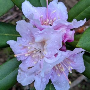こんばんわ。 友達の庭にお花が咲いていました。 薄ピンク色のお花 シャクナゲ どうしたのかしらん? 今 咲く時期ではないのに〜。