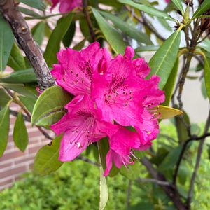 庭のシャクナゲ(鉢植え)が開花しました。 昨年の熱波で葉がかなり傷んでしまいました。 今年はこのキンモクセイの陰で育てます。