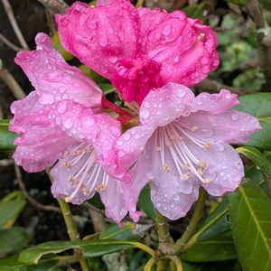 今日の庭パトロール 昨日まで蕾だったのに 石楠花の花が咲いていました。 花の中心に斑点があり、 豪華な花房を付けます。