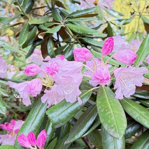 🌸シャクナゲ(石楠花) ツツジとの違いは花が密集して大きな一塊になって咲くところです。断崖絶壁の人の手の届かない所にしか咲かなかったことから、「高嶺の花」の由来になったと言われています。 ⚫︎ツツジ科 ツツジ属 ⚫︎原産 アジア(特にヒマラヤ) ⚫︎花期 4月〜5月