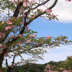 1) ハナミズキ(花水木) 2) シャクナゲ(石楠花) 3) ヤエザクラ(八重桜) 4) ベニバナトチノキ(紅花栃ノ木) 5) ホウノキ(朴ノ木) 新緑や 個性あふるる 樹木花
