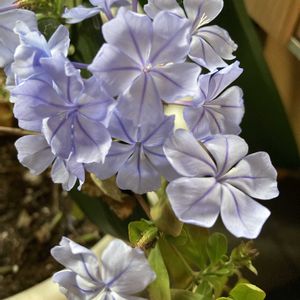 こんにちは😊 玄関に避難している、 ルリマツリの花が咲いてます🥰