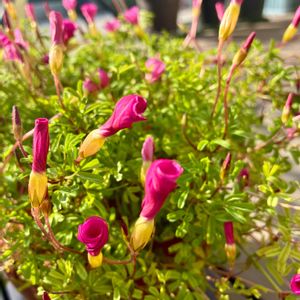 『オキザリス』 ひしめき合って❣️😁 ①🏷️金曜日の蕾たち ②満開〜🌸