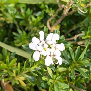 アリッサムが盛り沢山な花壇には、 違う花も混ざっていました。 1枚目>なんとなくはイベリスっぽいのですが、微妙に違う白花 2枚目>オキザリスとコラボ 3〜4枚目>たぶんスイートアリッサム盛り 良い香りでした~🥰