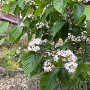 新しいマンションの植え込みに植えられています。 少しピンクがかった小さい花を咲かせています❣️ AIがガマズミと教えてくれましたが、先に投稿したハクサンボクとの違いは葉っぱでしょうか。 違っていたら教えて下さい。