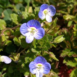 おはようございます😊 🏷 今日のお花オオイヌノフグリ😄 ① 去年4月の散歩道オオイヌノフグリ😌 ② 去年7月の散歩道ツユクサ🩵 ③ 今年2月の散歩道ホトケノザ😆 ④⑤ 先日の雪の次の日(2/9)散歩道☃️🌳🌲