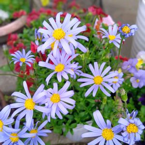 先日、初めて行ったお花屋さんでお迎えした1️⃣ブルーデージーと2️⃣ハートかずら♡ そしたら3️⃣デージー、4️⃣ブラキカム、ビデンスをおまけでいただきました😊 嬉しな🤭