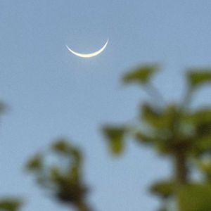 イチヨウの若葉✨ ほんとうの三日月🌙 きのうの夕暮れ時 キレイな三日月🌙⭐︎ 金星と仲良し⭐︎ だんだんブルーの空に💙 イチョウの若葉カワイイ🍃
