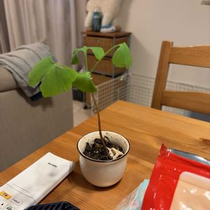 おはようございます♪ 実生のイチョウです。 酒のツマミとして産直店で購入したギンナンを2月頃に10粒ほど播種したものです☝️ 4月に入ってから少しずつ発芽してきました。現在10粒中8粒は発芽を確認しています。特に殻を割ったり水に漬けたり催芽処理はしていませんが、発芽率は結構高いみたいですね🤔(写真①) 今では小さい本葉を展開していてグングン成長しています。小さいなりにも本葉の形はちゃんとイチョウの特徴が出てきていますね🪴(写真②) もう少し大きくなったら盆栽仕立てで育ててみようと思います😁