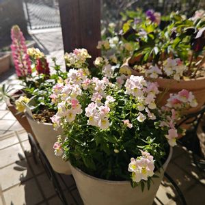 【1枚目】春を先取りコーナー。 苗からのネメシア・メーテルグッピーは本当に良く咲いてくれています☺️ 片や、その奥のメーテルターメリックは花付きがイマイチ、というか分枝しにくいみたいで本数が増えないんですよね。積極的にピンチして育てた方が良かったみたいです。 その奥にチラッと見えているルピナスは先日購入した苗です。昨季はピンクのルピナスから採種出来なかったので、今季に再チャレンジ!💪 【2枚目】つい先日までは縮こまっていたビオラですが、ここにきて急に咲き進んできました😚 9月4日種まきから170日目/5ヶ月と17日目。 【3枚目】3株植えのフローラルパワーマリーナ。良いお色😍 ソルベXPのマリーナより濃いめの水色です。色味は うみももか と同じ感じかな。うみももかの方が上弁が丸いように思います。機会があれば比べてみたいな🧐 【4枚目】ずっと咲いてくれている矮性ストック・ベイビー。8月27日種まきから178日目/5ヶ月と25日目 【5枚目】こぼれ種を拾ったノースポール(スノーランド)は1株でこんなに大きくなりました😆 通常9月くらいに発芽し始めるんですが、9月に拾った時にはすでに伸びていたから、かなり早めに発芽していたんだと思います。よい感じに拡がってくれました😚👍 連休は20℃超えのポカポカ陽気らしいので、いろんなものが咲き出しそうですね😚 このふわっと暖かくなった今こそオルトランを撒かねば💪 追肥も置き肥しておかねば💪
