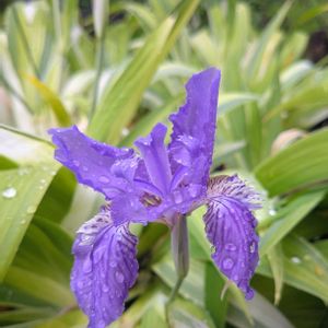 今朝の庭☔☔☔ 斑入りイチハツ アヤメ科の仲間で1番先に咲くので一発 ①②小さなポット苗を地植えにしたらあっと言う間に広がって・・・🤗 ③ホウチャクソウ 黄花ホウチャクソウはいつの間にか消え失せ😭