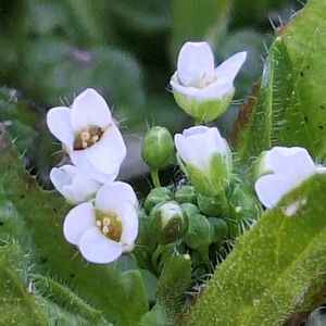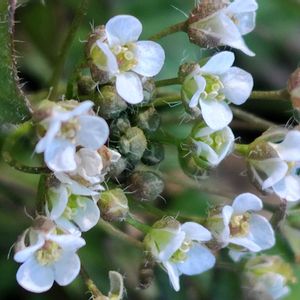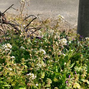 ナズナ アブラナ科ナズナ属 越年草 別名はペンペングサ、シャミセングサ 春から夏にかけて白い花と三角形の果実を付ける。 春の七草のひとつ 北海道〜九州に分布 田畑や荒れ地、道端などあらゆるところに生える。 花期3〜7月 越冬するので、背の低いうちから咲き始める。 花茎を伸ばして分枝する枝先に、総状花序を出して、十字形で4枚の白い花弁を持つ3mmほどの小さな花を多数付ける。 🏷️白い水曜日♡ に参加させていただきます。