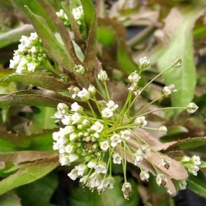 お散歩中に見たお花たち… ハノハナ(ナバナ) ナズナ(薺)=ペンペングサ×2 ノキシノブ(軒忍)/マメヅタ(豆蔦) バーベナ(美女桜) 菜の花 ⚫︎⚪︎⚪︎⚪︎⚪︎