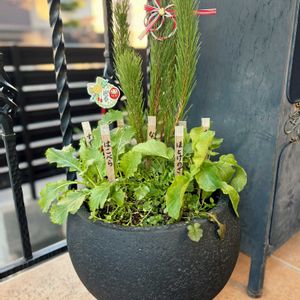 お正月準備 春の七草の寄せ植えを玄関前に移動させ、門松のかわりになるように松をさしました。
