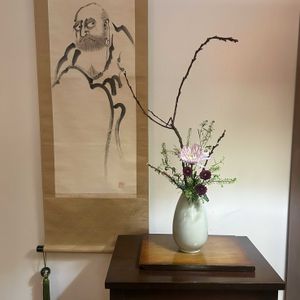大寒波のピークが過ぎました。 寒いですがマイナス一桁なので、しのげます。 寒いとなぜかコーヒーではなく、ココアが飲みたくなるので、春に向けてなんとかしなくては🤣 花器: 🇺🇸製挿し口が前面に小さく開いているオフホワイトの花瓶 花材: ナズナ?(お花屋さんからです)、石化柳、大菊、小菊