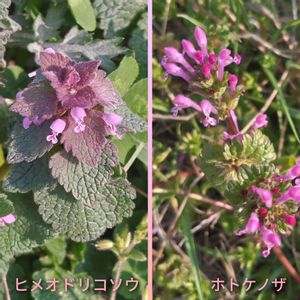 こんにちは😊♪☀ お疲れ様です☕🍰 本日2回目の投稿 失礼します ① ヒメオドリコソウとホトケノザ💗💗 よく似ていますね ②ナズナ🤍 オランダミミナグサ🤍 撮影日2026.3.29 ウォーキング中に🚶♀️ 川土手で見付けました✨✨ 野に咲く小さなお花たち 可愛らしいですね💞💞 見て頂きありがとうございます😊🍓