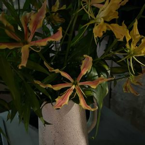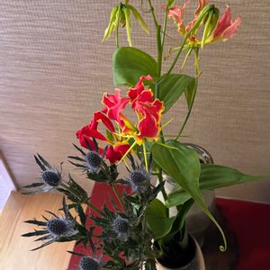 グロリオサ&エリンジューム 我が家近くではあまり見ない切花をお出かけ先で見つけたので買いました🎶