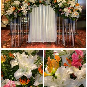 東京會舘玄関ホールのフラワーフォトスポット。 この前で結婚式記念写真の撮影をしている。