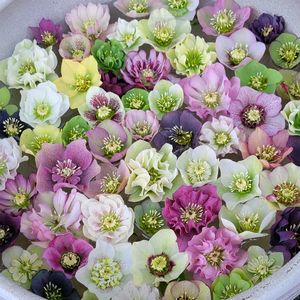 クリスマスローズとは📖 クリスマスローズの正式名称 (学名) は"へレ ボルスHelleborus"。 キンポウゲ科ヘレ ボルス属 の宿根多年草で、 クレマチスやアネモネ、 ラナン キュラスなどの仲間です。 世の中に広まった歴史 は古く、 紀元前1400年頃には治療薬として使わ れていたという文献 (『世界薬用植物百科事典』 誠文堂新光社 刊) があり、 薬用植物として扱わ れていたことがはじまりと書かれています。 クリスマスローズの花手水で 花のバリエーション 花の咲き方 模様 2️⃣セミダブル(アネモネ咲き) 花弁の中心部の蜜膜がかなり弁化している。内弁は外弁の模様と連動していることが多い。中心部の花弁は散り落ちる。 3️⃣ブロツチ (模様) スポツト(斑点)が 多く、花井の半分 以上の面積を占め る。また、スポツト が部分的にくつ ている。 4️⃣フラッシュ(模様) 花弁の中心部から 1/4 ~ 1/3程度、 暗色系 の色が炎のようにじみ 出る模様。 5️⃣ヘレボルス・プリマドレス 横山直樹氏交配 (作出) フリルがかかった花弁が、 バレエの プリマの衣装を思わせ、 幾重にも 重なる豪華な花容が 特徴の多弁花 のシリーズ。 花色も多く、 これからどのように進化 していく のか楽しみであるる とにかく美しい!! 昨日 綺麗に咲いてました(ღ˘⌣˘ღ) クリスマスローズ バリエーション豊かな花模様 お気に入りの1株に出会うたのしみと喜びを味わって下さい。(本文から) モデルは りりーちゃん この日のアシスタントは大好きな先輩(指は撮さないで)