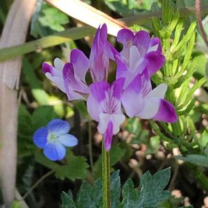 レンゲソウ(蓮華草)が咲いていました。 マメ科で、咲き姿が「ハスの花」に似ていたためレンゲと言われたとのこと✨ ひとつひとつの小さい花びら🌼が、いくつも集まって咲いています💕🎶😃