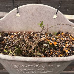 こんにちは🌼 昨日から湿った雪がちらつきました。 庭の雪もほとんど無くなり、庭の鉢植えはこの時期はちょっとこまりものです。雪がある内は水切れも気にしなくて良かったですよね! 昨年遅くに園芸店でお値引き品だったユーカリ(ポポラス) 植え替えして室内で様子をみてたら葉っぱが落ちてきて……大丈夫かなぁと日々観察して3ヶ月程たちました。 若芽が出てきました(^-^)vやったー✨😍✨嬉しい~🎶😆⤴️💓 ただまだ枝先に葉っぱが付いていて、枝をどこで切るべきか迷ってます( *´艸`)