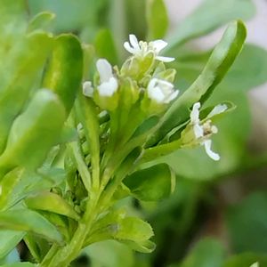 ベランダで何も植えないで置いていたプランターにカタバミ達が茂っています😅🌿 その中にとても小さな白いお花が咲いていました(⑤の真ん中少し上ぐらい)💮🧐 googleで検索するとタネツケバナとでましたが、あまり自信がありません。 間違っていたら申し訳ございません。 ご存知の方がおられましたら教えて下さい🙂↕️🍀