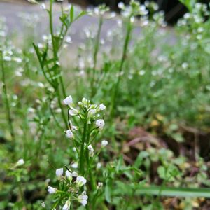 オオイヌノフグリが幅をきかせている庭ですが、家の庭はある程度雑草と呼ばれる子たちも生えたままにしてあります。 いろいろありますが ②③タネツケバナ 種が広がるように付いているからタネツケバナだと思っていますがどうでしょう。 ④⑤ナズナ ペンベングサの呼び方も好きです。 種がある程度落ちたら抜いてしまいますが、今は可愛い姿を楽しませてもらっています♡