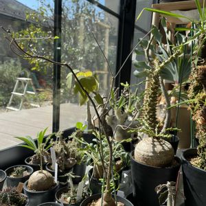 とっても暖かい🫠長袖だと汗出ます💦発根管理中のユーフォルビア、もう葉っぱ出てきました😊少しでも根が残ってると早いですね😊葉っぱが丸いので、やはりマハボボケンシスのようです😊後は咲進んだ人達♪