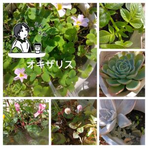 pick No2135 11/14 (金) 晴れたー☀ 花パト、撮影、洗濯物干す、排水の流れが悪く突いてみた 週末の息子夫婦の副業に孫守りを さっき連絡され 😡 パンジーの種蒔きっ子をポットあげをしてみました 種蒔き用土では肥料分が足りない 花用培養土に。 葉の枚数は少ないけど 写真は晴天☀だと開花するオキザリス じゃがいもは小さなお芋の葉 右側の多肉植物はグリーンが七福神 白っぽいのが、おぼろ月は子が増えてます😊