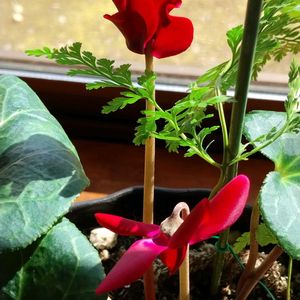 気温がぐんぐん上昇して20度を越えました。 わが家で10年になるシクラメン、 今年も二輪咲きました。 葉も11枚しかなく、なぜかシノブが同じ鉢に。 ここまでくると愛おしく、頑張ってほしいです。