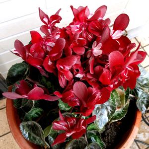 この場所が よほど気に入っているのでしょう 冬の寒さ❄️も夏の暑さ☀️も 大丈夫でーす😆👍と 乗り越えてくれ 何年目かの開花 シクラメン