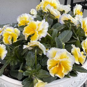 サトウ園芸さんのビオラ エッグタルト🍳 𓈒𓂂𓏸 黄色と白のバイカラーが可愛く、元気が出るお花です😄