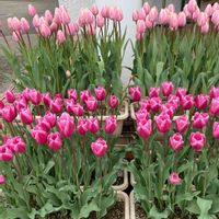 おはようございます😊 🏷 今日のお花チューリップ😆 去年4月に咲いたピンクのチューリップです🩷 とても可愛いのでまた会いたくて 去年11月に球根植えました🧄 咲いてくれるかな〜🌷 ④ ピンク色のお花達🩷