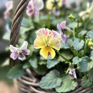 赤が薄まってるのんさんアップルタルトの哀愁 hanaoビオラのたれぱんだちゃんも うつむいてる かわいいかわいいすがーでんバスケット🧺