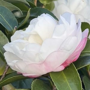 🩷🤍サザンカ 一本の木からピンクと白のお花 初めて見ました😳 ①②紅白サザンカ ③駅前の白八重サザンカ ④⑤香るギンモクセイ