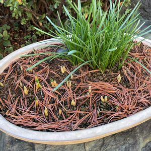 楕円形の浅鉢に植えた クロッカス、芽🌱が だんだん 動き始めて、出て来ました〜❗️ 真ん中に、すでに 芽吹いてる草🌱は、ムスカリです。。。 2枚目 ビオラ トルニーさん、 微妙な色合いしてます💓💕 3枚目 そのトルニーさん、花の裏側が 綺麗な すみれ色です💜 4枚目、挿し木した ラベンダーグロッソや、サントリナ🌿 葉っぱの色が 白っぽくて、庭では 今、目立つ存在です❣️^_^