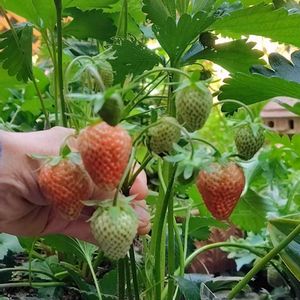 ①はなままの🍓が色づき始めました✨️。 日照時間が少ないのによぅ頑張ってる✊️。 ②地植えにしたラベンダー🪻の根がついたかな? 初夏にはいい香りがするといいなぁ。 ③モフモフ🌿コーナー。 ニゲラ、オルレア、ヒューケラ、ブルーサルビア…あといろいろ🤭。 目標はワイルドガーデンだよ。 ④はなままの好きな🟢色ジニアの芽が出たよ〜🌱。 ⑤クリスマスローズの芽出しはやっぱり難しいよね😅。