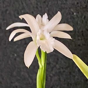 L.lundii var. alba ‘Cotia’ 原種の小型着生ラン 花 ;2.5x2.5cm 丈;15cm 昨日投稿したアンセプスは、花茎が70cm。同じレリアでも今日のルンディーは丈が15cmほど。 「小さき物は いとおかし!」 大きなものも可愛いですが---。