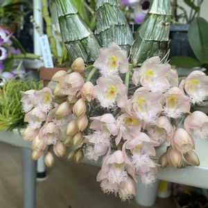 レベッカノーザン ミッカビ 今年は5花茎出てくれて、ウヒョーっとなりましたが、シケてしまわないか心配で毎日欠かさず霧吹きしてました。最後の蕾が咲いた頃には、最初に咲いたお花が枯れてしまうかな。。 デンドロ ラッキードラゴン 去年ホームセンターで花後見切り品500円で買いましたけど、今年こんなに花数ついてくれて、良いお買い物をさせていただきました🥰
