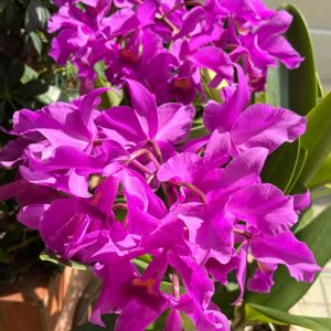 今日のお花💛オンシジウム💛と温室のお花 1️⃣オンシジウム (202412月) 東南アジアの民族衣装を着た踊り子さんに見えちゃいます 2️⃣カトレア 3️⃣ウスギコンロンカ 4️⃣リジディス.ロドステニア 東南アジアの東部地域に自生するマメ科の木で、南アジア東アフリカなどに導入 夏に白や紫色の花を咲かせる 古代中国では皇帝に献上した花で、「皇帝の花」と呼ばれた 日本でも庭園や特別な行事で使用されたようです 紫の花は枯れたものしか咲いてなかったです 今はお豆のさやができているようです Google先生にも分からない花が、最近ネットのブログに載っていたので、名前が判明しました 夏の紫の高貴なお花が載っていましたので、ご参考にして下さい 2️⃣3️⃣4️⃣2025.10/20