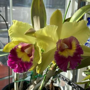 おはようございます🌞 先日からカトレアの 蕾が膨らみ始め 今朝二輪開花しました 部屋の中を彩っています