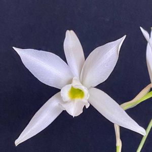 L. anceps var. alba 原種の着生ラン 花;11x11cm 丈;30cm 花茎;60cm 昨年夏、花芽の出かかった頃の猛暑でか、水やり不足でか? リード3本のうち2本が枯れて、1本だけしか咲きませんでした。 技量未熟を反省しています。