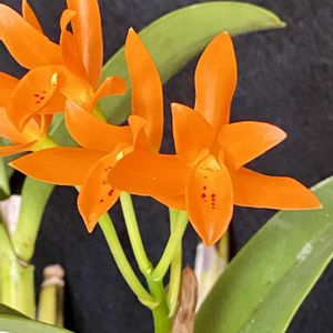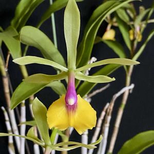 Epc. Rene Marques エピデンドラムとカトレアの交配種 花;8x8cm 今年は2バルブ4輪が咲いてくれました。