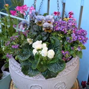 新しい鉢を買ったのでどうしても新しく寄せ植えを作りたくなって😃 桂楓園さんのフェデネージュ和 ネメシア プリムラホワイト アリッサムミックス