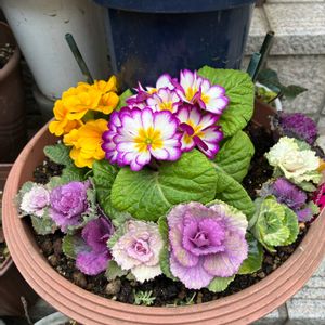 1, 2枚目は、気に入ってお一人様植えをしている春の花たちです😊 3枚目は、サントリーフラワーズの早春の寄植えです😊