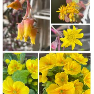 庭の黄色のお花達💛 多肉さんのお花が咲き出しました🎶ストロベリーアイス 薄化粧 ルビーネックレス🎶プランターのプリムラ.ꕤ*.゜ 16日はイエローの日に参加します 🏷16日はイエローの日