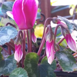①② 一昨年の秋にお迎えしたこのシクラメンが去年夏越しして今年また咲き始めてくれました✨ マラコイデスと寄せ植えにした黄色💛のプリムラも風除室で元気に咲いてます✨ 1/9 撮影🤳 ③~⑤ 1/10の朝の6:30頃見たお月様🌖と北西の低い空に見えた多分、木星🌟(ブレテマス💦) お月様は1/11の0:48に下弦を迎えています✨🌗✨ 木星🌟は1/10の17:42分頃、「衝(しょう)」を迎える12時間程前の多分、木星🌟 ぴ〰️すたまさんの 🏷️「半分そら」 どなたの🏷️かは分かりませんが 🏷️「日曜もお空の発表会」 に参加させて頂きます😌
