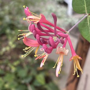 🩷ハニーサックル(西洋スイカズラ) 11月に咲いていました。秋が例年より暖かいと「もう一度春が来た」と誤解して再開花することがあるようです。 ⚫︎スイカズラ科 スイカズラ属 ⚫︎原産 日本 ⚫︎花期 5月〜7月