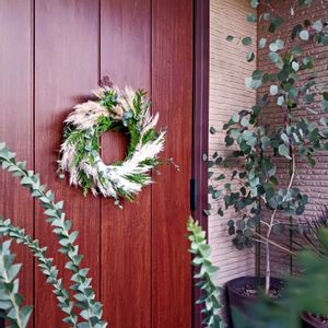 受験生がいるので静かなクリスマスです🤫 これから静かにケーキを焼きます🤫 忙しくてクリスマス遊びもままならなかったこの頃。 ようやく出掛けた花屋のラインナップはクリスマス用からお正月用に切り替わってました🥲 赤い実もコニファーも手に入らず、お正月生け花用のヒバだけ求めて、秋に作ったパンパスグラスリースを解体してグリーン×ホワイトリースにリメイクしました。